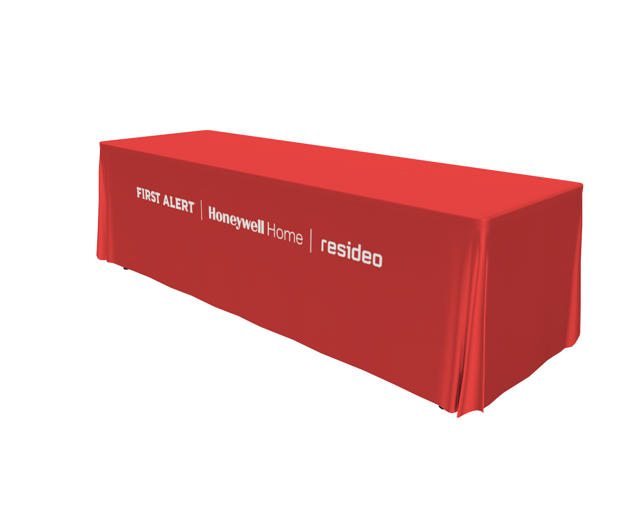 8ft table throw offering custom-printed graphics throughout the entire throw. The full throw drapes down on all sides around the table. Hemmed edges on tablecloth material add strength and prevent fraying.
