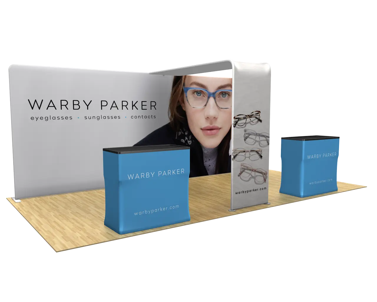 Transform your 10x20 trade show booth with this dynamic display featuring three backlit SEG panels, totaling 192 LED lights for stunning, vibrant visuals. The booth also includes two sleek, backlit counters at the front, adding both style and functionality to your space. Designed for easy assembly, these portable panels and counters are lightweight and simple to set up, offering a seamless experience. With high-quality, evenly distributed lighting, this booth creates a professional, modern look that will help your brand stand out at any event.